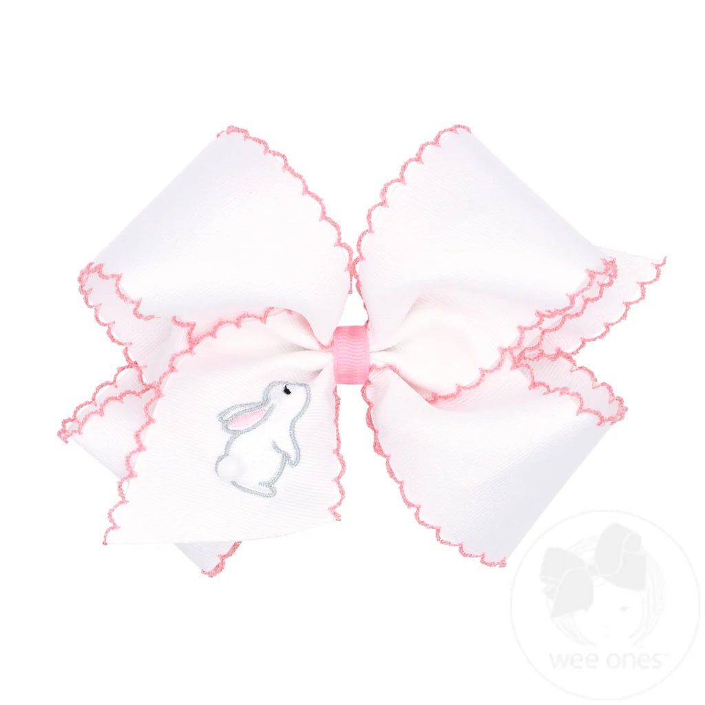 Moonstitch Grosgrain Hair Bow with Easter-Inspired White Bunny Embroidery