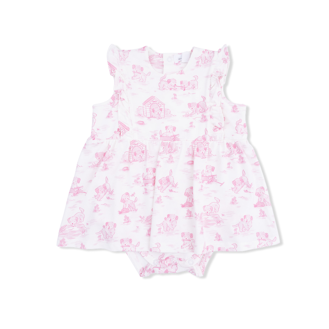 Puppy Toile Pink - Ruffle Bodysuit Dress