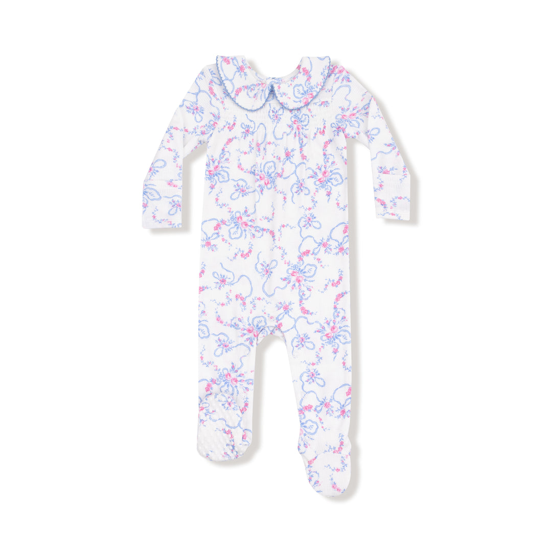 Ribbon Floral Fling Smocked Peter Pan Snap Footie