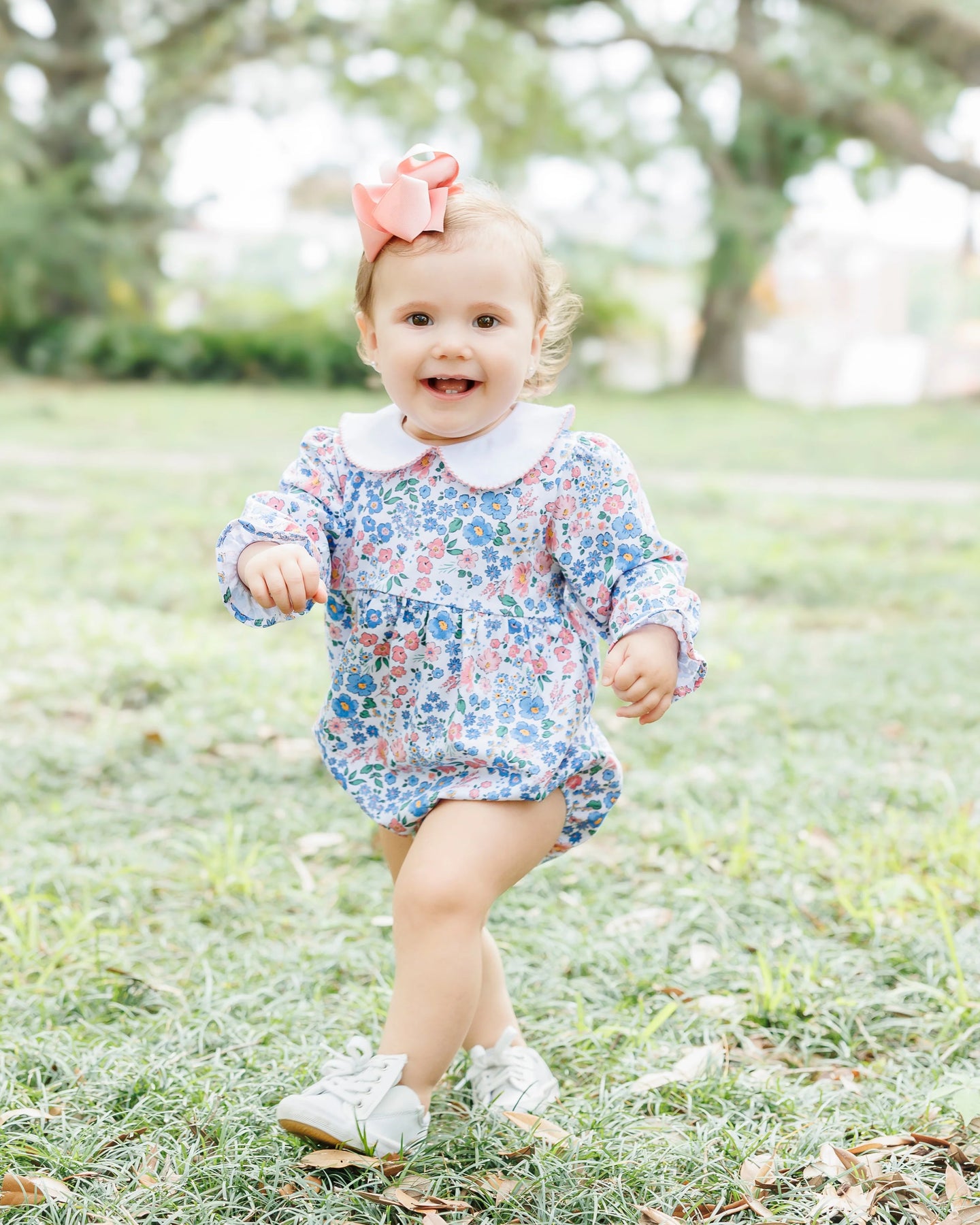 Get ready to bloom this autumn with our new Autumn Blooms Print Collection! This Charlotte Bubble features the Autumn Blooms Print and a classic white peter pan collar. Make a statement with this one-of-a-kind bubble that will catch everyone's eye.