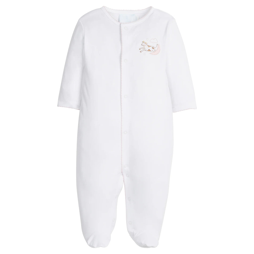 Embroidered Footie- Pink Cow Jumping Over the Moon