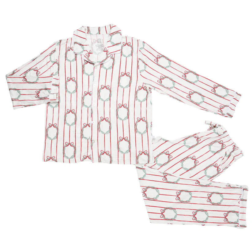 Womens Poinsettia Wreath Button Down Loungewear Set