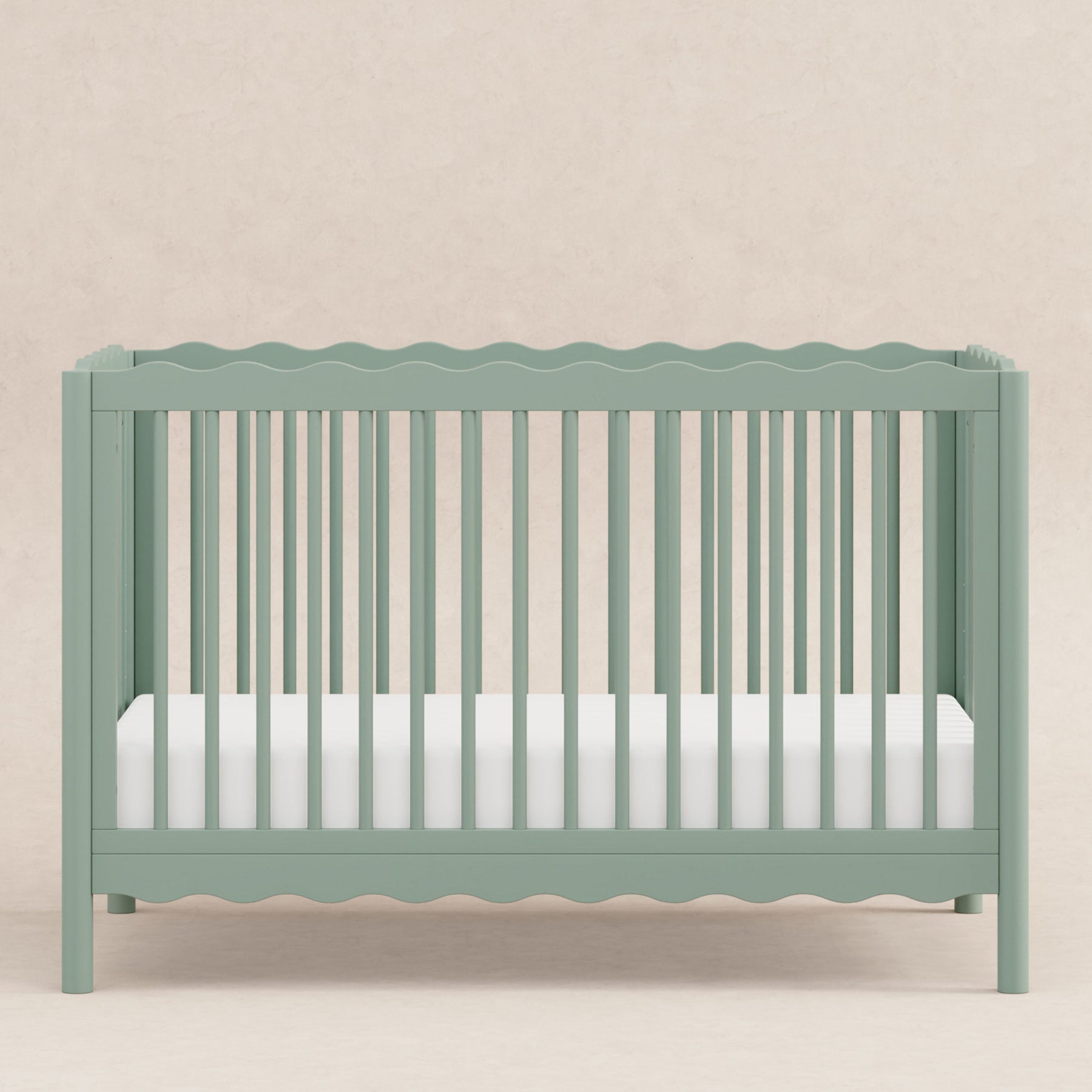 Dive into a world of playful charm with the Swell 4-in-1 Convertible Crib! Designed with wavy top and bottom railings inspired by the gentle undulations of ocean waves, this crib invokes the serene beauty of the sea and comes in a variety of colors to compliment any nursery. The Swell is made with sustainable New Zealand pine wood and screened for harmful chemicals to ensure it meets GREENGUARD GOLD Certification. An included toddler bed conversion kit allows you to seamlessly convert from crib to toddler bed to daybed with the option to add a full-sized bed conversion as you enter the big kid years.