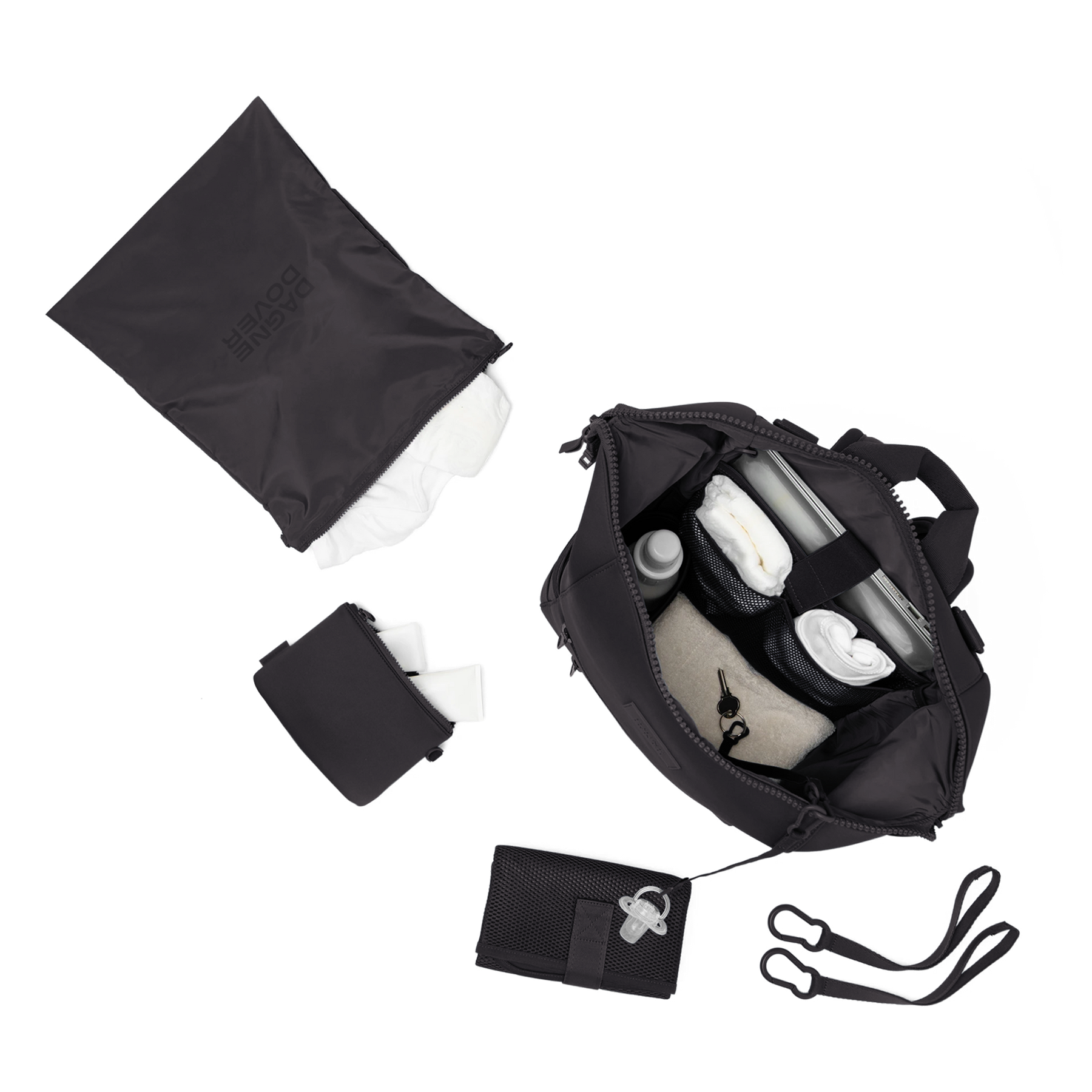 This ones for all the Indi kids. Part backpack. Part diaper bag. The Indi has plenty of storage for extra diapers and clothes and also has pouches and pockets for wipes, toys, snacks, and more. Not only that, but its got two key leashes–one for keys and one for binkies. And if your new little one has an older sibling that likes to (or needs to) be distracted by a tablet, theres room for that too.