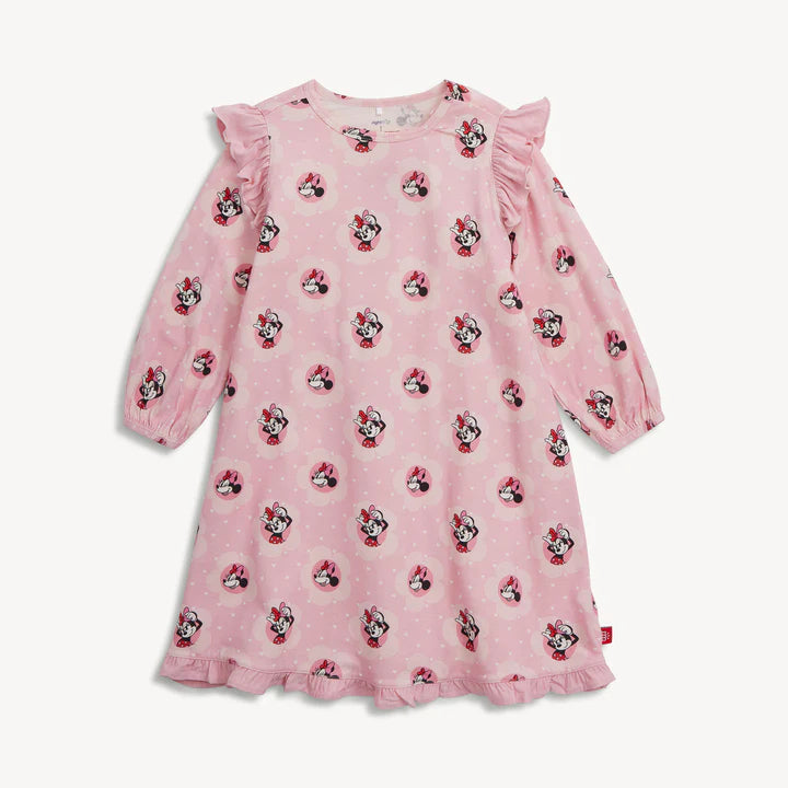 Pink Scallop Twirling Pocket Long Sleeve Dress