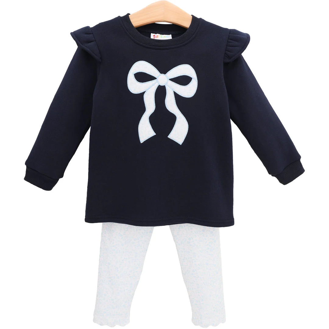 Snuggle up in style with our Blue Blooms Ruffle Sweatshirt Set! This adorable combo features a cozy sweatshirt with playful flutter sleeves and a charming trellis bow applique that adds just the right touch of whimsy. Paired with our blue blooms print pants, this set is perfect for mixing comfort with cuteness for all-day adventures!
