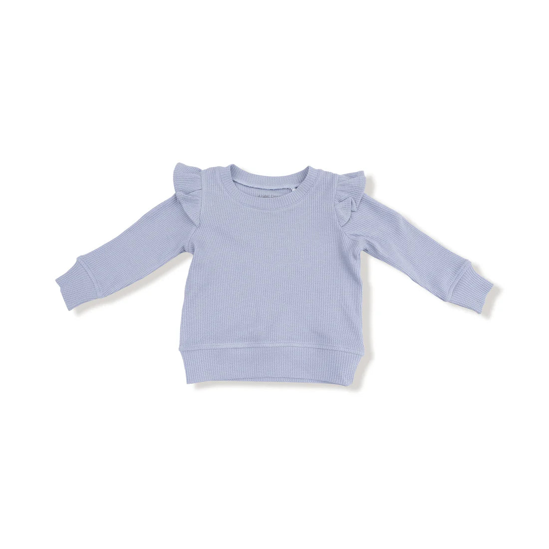 Waffle Knit Shirt: Soft, textured fabric with charming ruffle shoulders