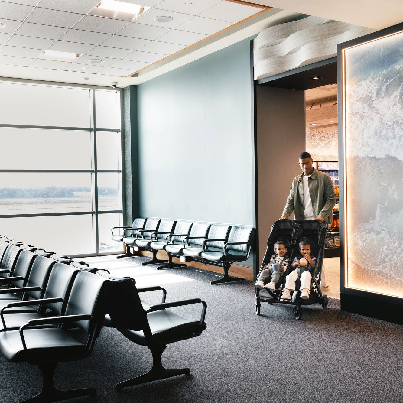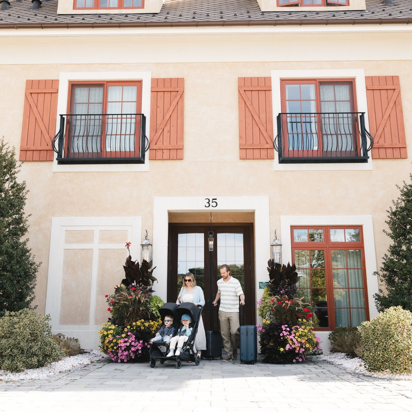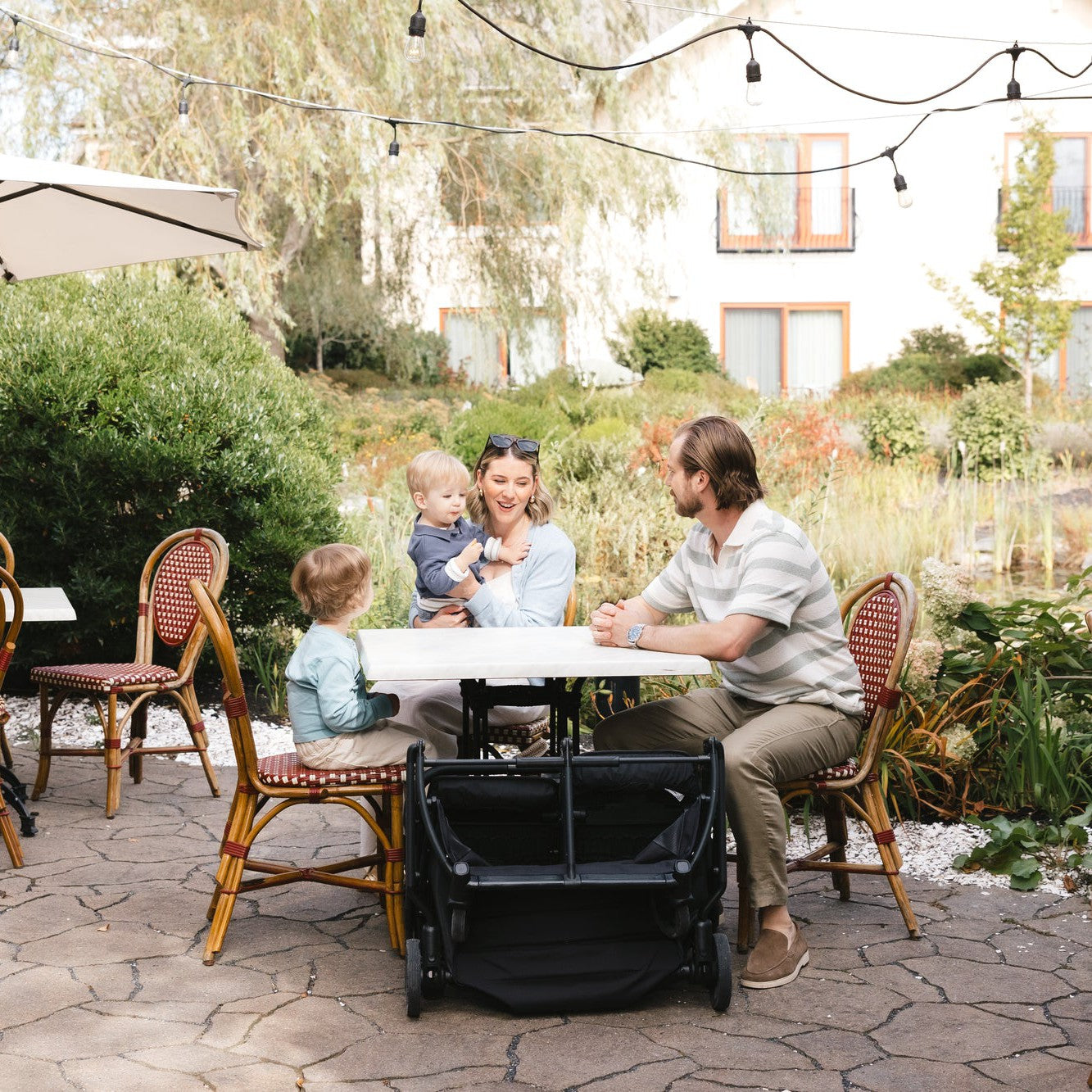 The Minu Duo is a from-birth, side-by-side compact stroller that fits a wide variety of two-child families, from twins to infant and toddler combinations. It’s small enough to fit through a standard doorway and versatile enough to accommodate children up to 50 lbs / 22 kg, so you can travel together as a family with ease.