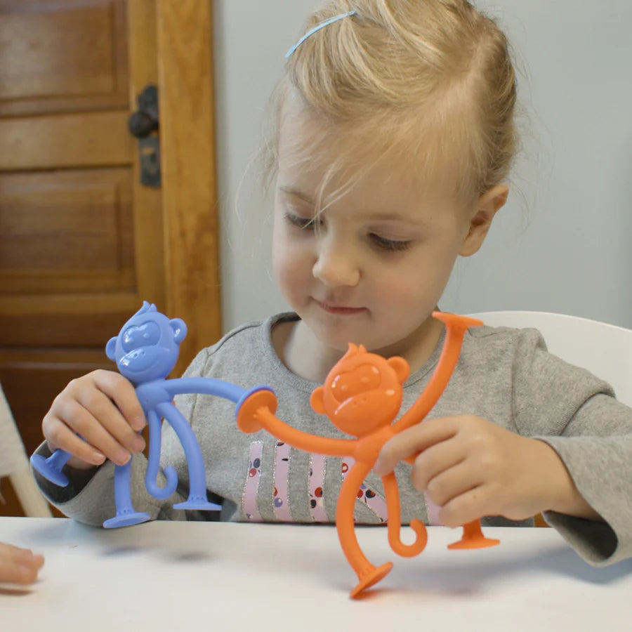 Introduce your little one to endless fun and creativity with My First HangaTangs! Designed for ages 10 months and up, this adorable six-pack of playful monkeys encourages sensory exploration, fine motor skill development, and imaginative play. Made from soft, food-grade silicone, these friendly monkeys feature suction cup hands and feet, allowing them to stick together, hang from surfaces, and create exciting shapes and chains. Whether in the high chair, bathtub, or on the go, My First HangaTangs keeps little hands busy and minds engaged. Safe, durable, and easy to clean, this toy is the perfect companion for growing explorers!