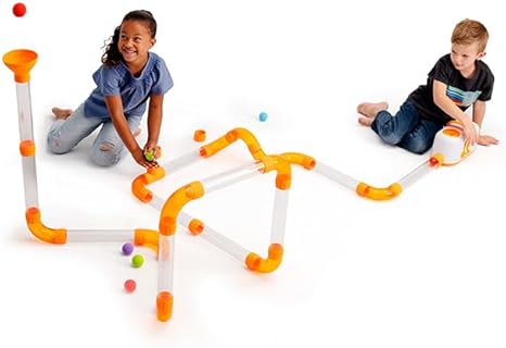- Includes 6 transparent 12-inch tubes, 6 transparent orange corner tubes, 12 easy-fit connectors, 10 colorful EVA foam balls