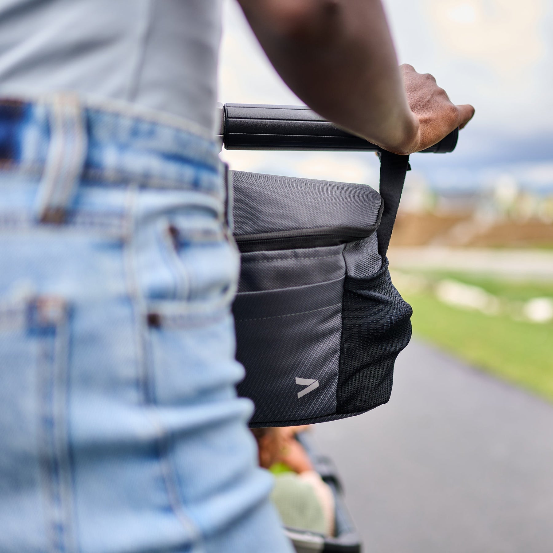 Veer's Parent Organizer is the one you need. Attaches securely to any Cruiser, Switchback Seat, and the &Roll and &Jog frames to provide storage for keeping essentials accessible and secure. It stores infant bottles, sippy cups, wipes, diapers, phones, keys, or whatever else you may need to keep handy.